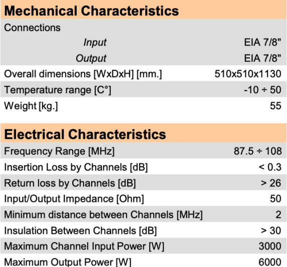 conception et la fabrication de systèmes coaxiaux pour les applications de radiodiffusion. Associée à une technologie CAD (conception assistée par ordinateur) et à l'expérience d'un personnel hautement qualifié, la société Delta Meccanica conçoit et réalise de nombreux systèmes de fitres Haute Fréquence et multiplexeurs Haute Fréquence pour la radiodiffusion FM et DAB et la télévision, tant en VHF qu'en UHF.